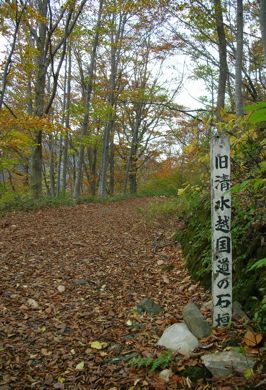 一ノ倉沢から幽ノ沢につづくこの細い落葉道は国道。かつては越後〜上州を結ぶ