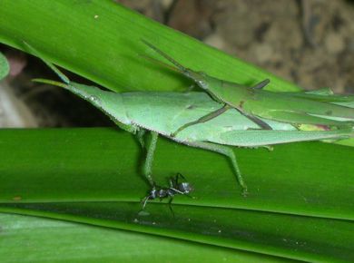 オンブバッタ:親子ではありません。これは番(つがい)。