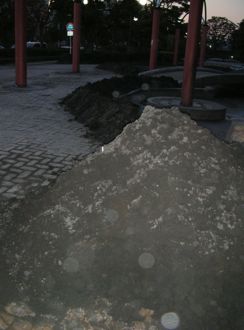 写真は最初の揺れ直後の液状化現象。(その後はひどいものでした)