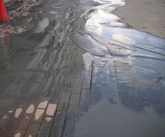 地震などの震動を受けることによって、液体のような泥水状態になる