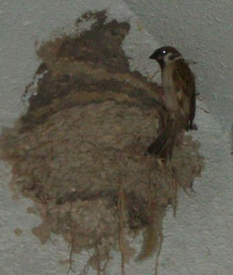 真夏の連日の猛暑に子育て中のスズメがいました。